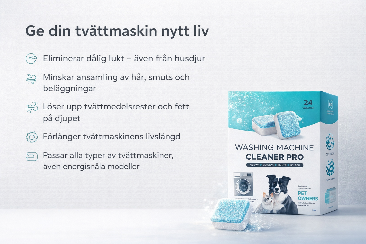 Absolut. MaskinRent är särskilt utvecklat för att hantera sådana problem. De aktiva enzymerna bryter ner organiska rester (som fett, biofilm och proteiner från päls) och neutraliserar dålig lukt vid källan. Det innebär att fastnat djurhår lyfts bort och spolas ut, mögel och bakterier minskar, och din maskin lämnas fräsch, luktfri och fri från pälsrester.
