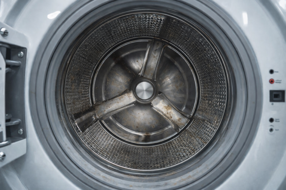 Med tiden byggs tvättmedelsrester, fett, hudavlagringar och smuts upp på insidan av maskinen – särskilt i gummitätningar, slangar och trummans baksida. Där borstar och höga temperaturer aldrig når.